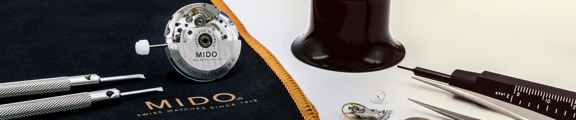 把机芯拆分成各个组件,检查机芯并更换已磨损的机芯组件,清洁,上油,组装,调整精确度,根据美度质量标准检验机芯功能或更换机芯清洁表壳和金属表带。
